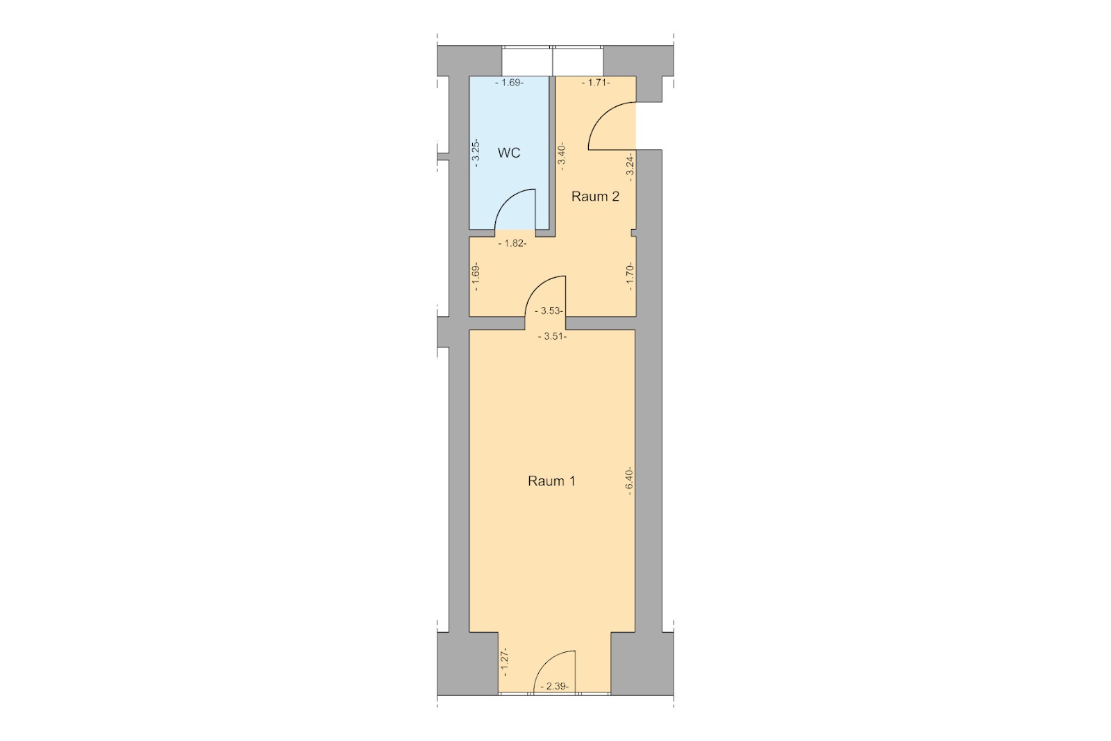 Heller Ladeneingang, ein Hauptverkaufsraum, ein weiterer Raum zur individuellen Nutzung auch als Lager oder Büro, ein separates WC, Wasseranschluss für die Möglichkeit einer Pantryküche