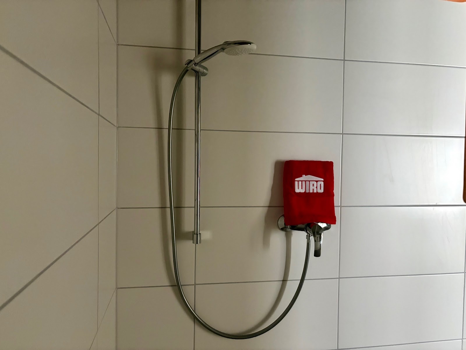Die modernen Bäder sind bis zu einer Höhe von 1,20 m stilvoll gefliest und im Bereich der Dusche sogar bis auf 2,10 m Höhe verlegt. Die ungefliesten Wand- und Deckenflächen werden weiß gestrichen. Es gibt weiße Waschtische mit Einhebelmischbatterie- und Ablaufgarnitur sowie wandhängende WC-Becken mit Kunststoffsitz. Die ebenerdige Dusche ist ohne Duschabtrennung. Die Duscharmaturen sind verchromt und werden in Aufputz montiert.